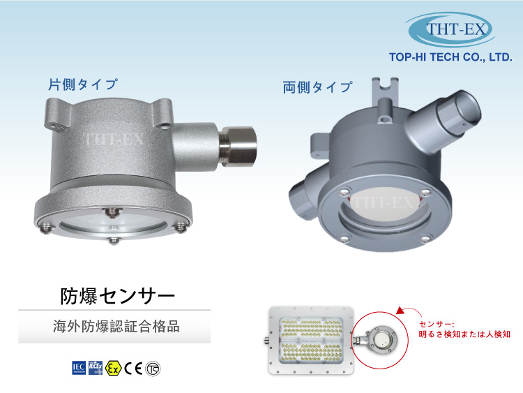 | 製品の特徴: | このセンサーはTHT-EXの防爆照明器具に取付ける可能です。省エネ効果がアップ。 |
