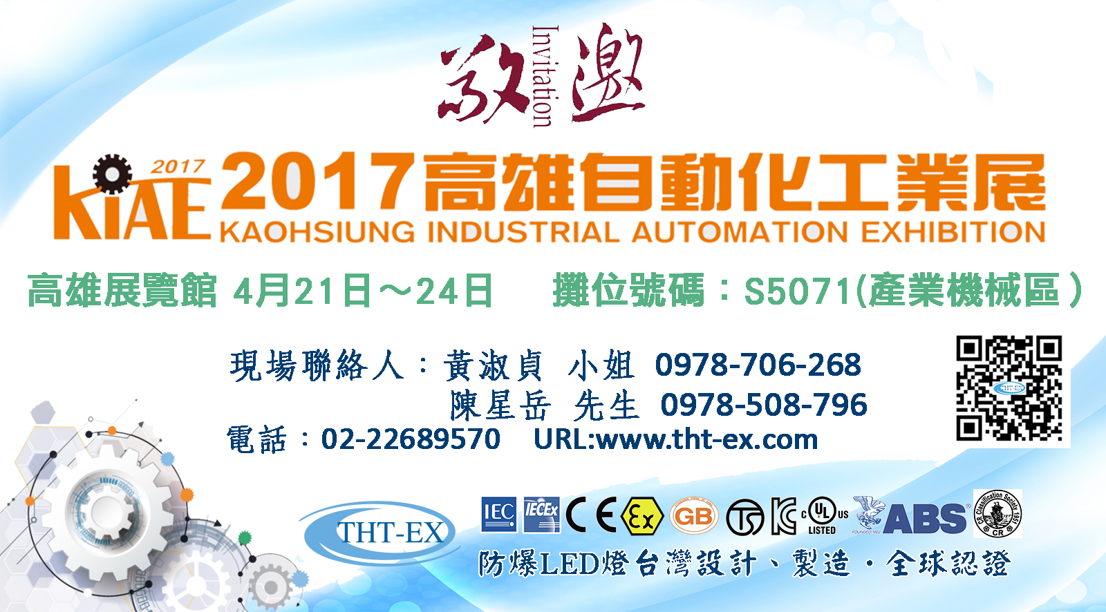 2017高雄工業オートメーション展示会は高雄展覧館で開催されます!弊社は多く新しい防爆LED照明製品の展示や紹介を行う予定です。皆様のご来場をお待ちしております。