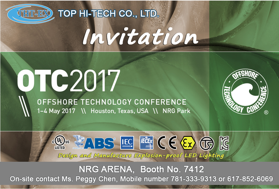 弊社は今年北米ヒューストンで開催されるOffshore Technology Conference(OTC)2017展示会に出展します。久鑫科技は信頼ある防爆型LED照明器具の製品を多く出展する予定です。是非ご来場くださいますようご案内申し上げます。