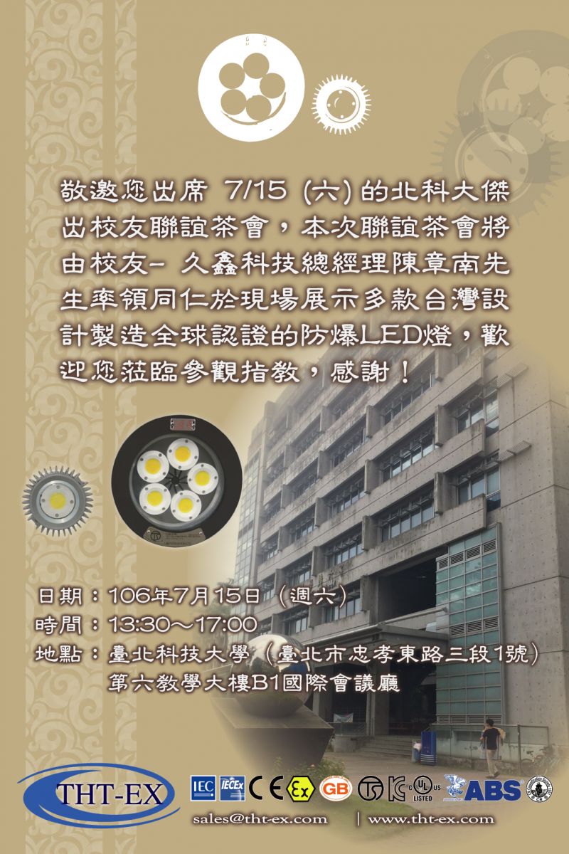 いきなりお知らせですが、明日国立台北科技大学で弊社は最新の防爆形LED照明製品を多く展示致します。ご来場の際は、是非ともお立ち寄りくださいますようお願い申し上げます!