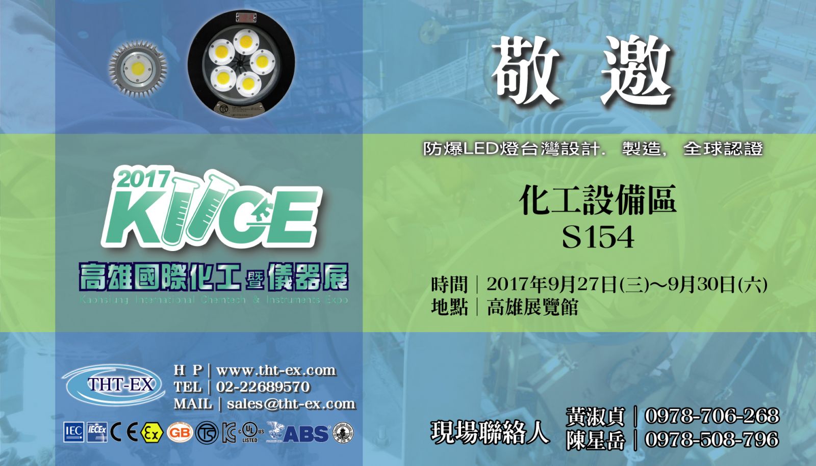 弊社は明日に高雄で開催される2017高雄国際ケミテック&テスター測定機器展に出展します。久鑫科技は全シリーズの防爆照明器具製品を多く出展予定です。