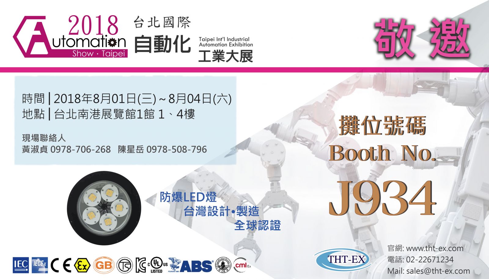 Booth NO. J934Please visit us at Taipei Int'l Industrial Automation Exhibition 2018, August 1 to August 4.