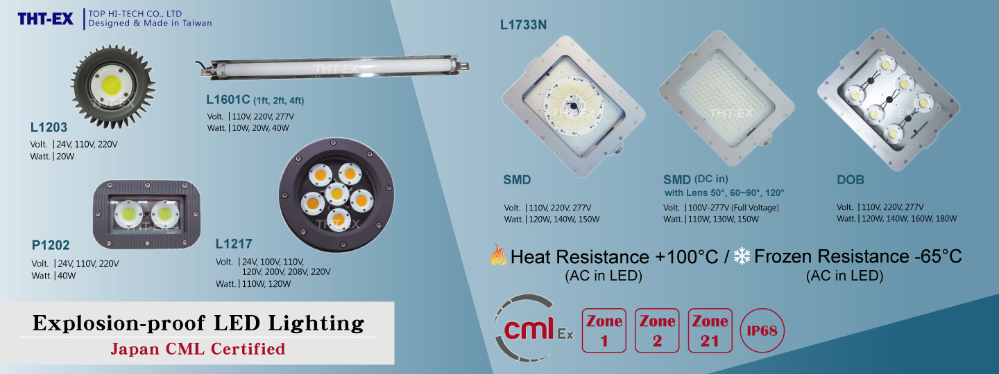 日本の顧客ニーズを応えるため、THT-EXは防爆LEDライト、防爆リニアライトおよび防爆高天井ライトを