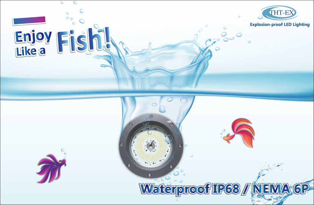 THT-EXの照明器具は保護等級の高いIP68 / NEMA 6Pで設計されており、屋外、高湿度環境、または船舶(ABS認定)に適しています。