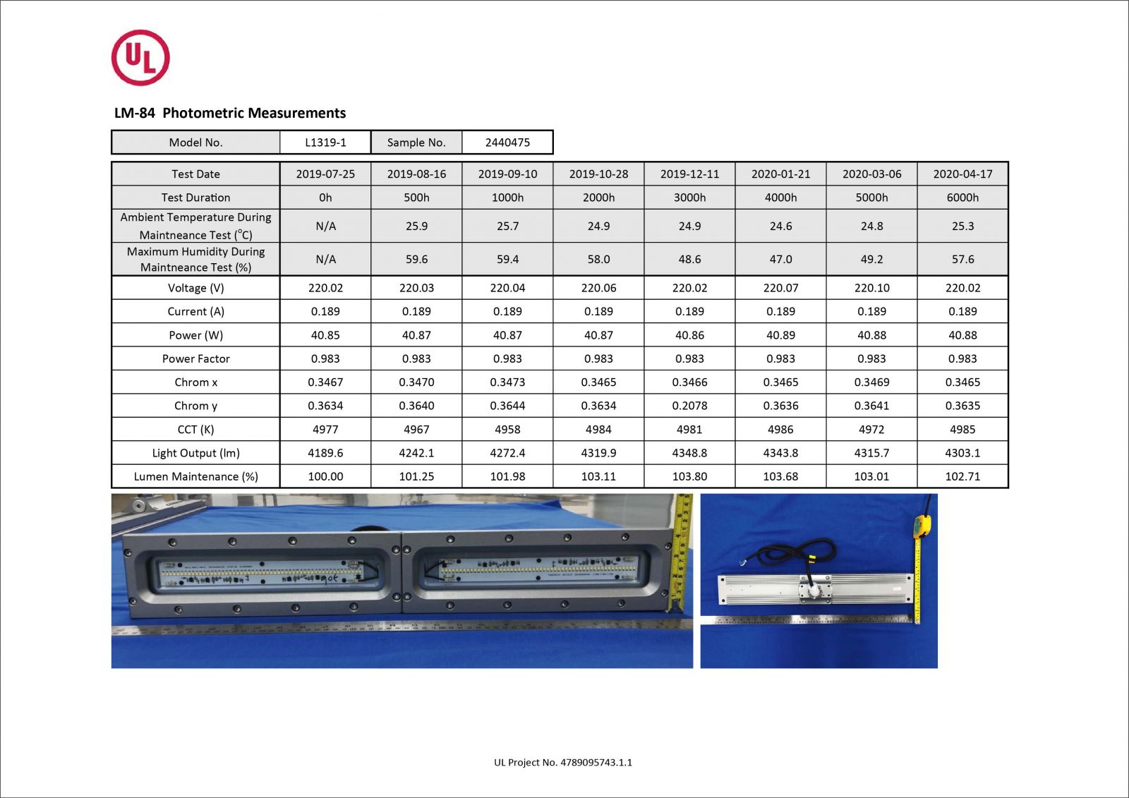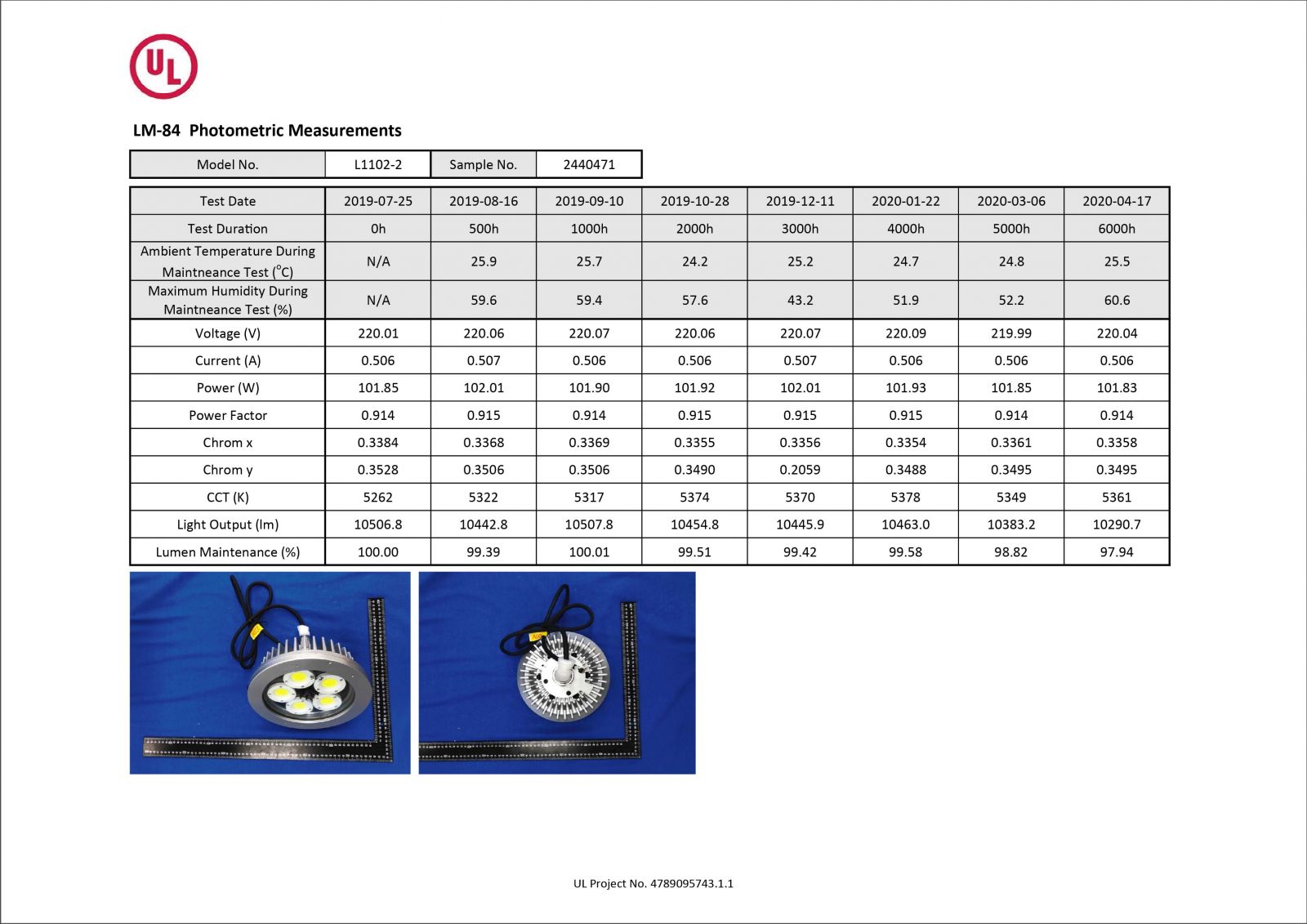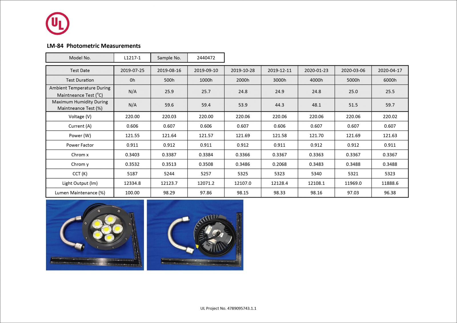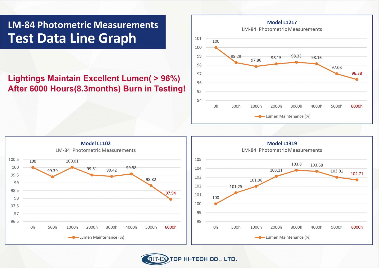 ランプは6000時間の点灯テストでは、ルーメン維持率と色温度維持率は標準を上回っています!
