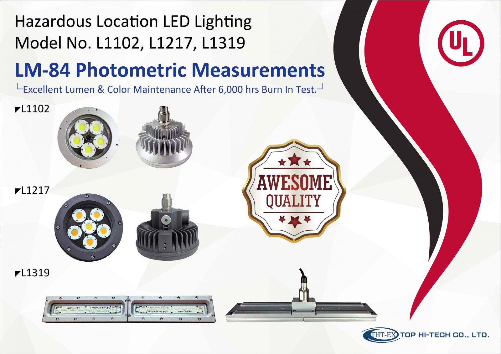 THT-EX防爆AC-IN LEDライトL1102、L1217、およびL1319は、ULから優れたLM-84テスト結果を受け取りました。