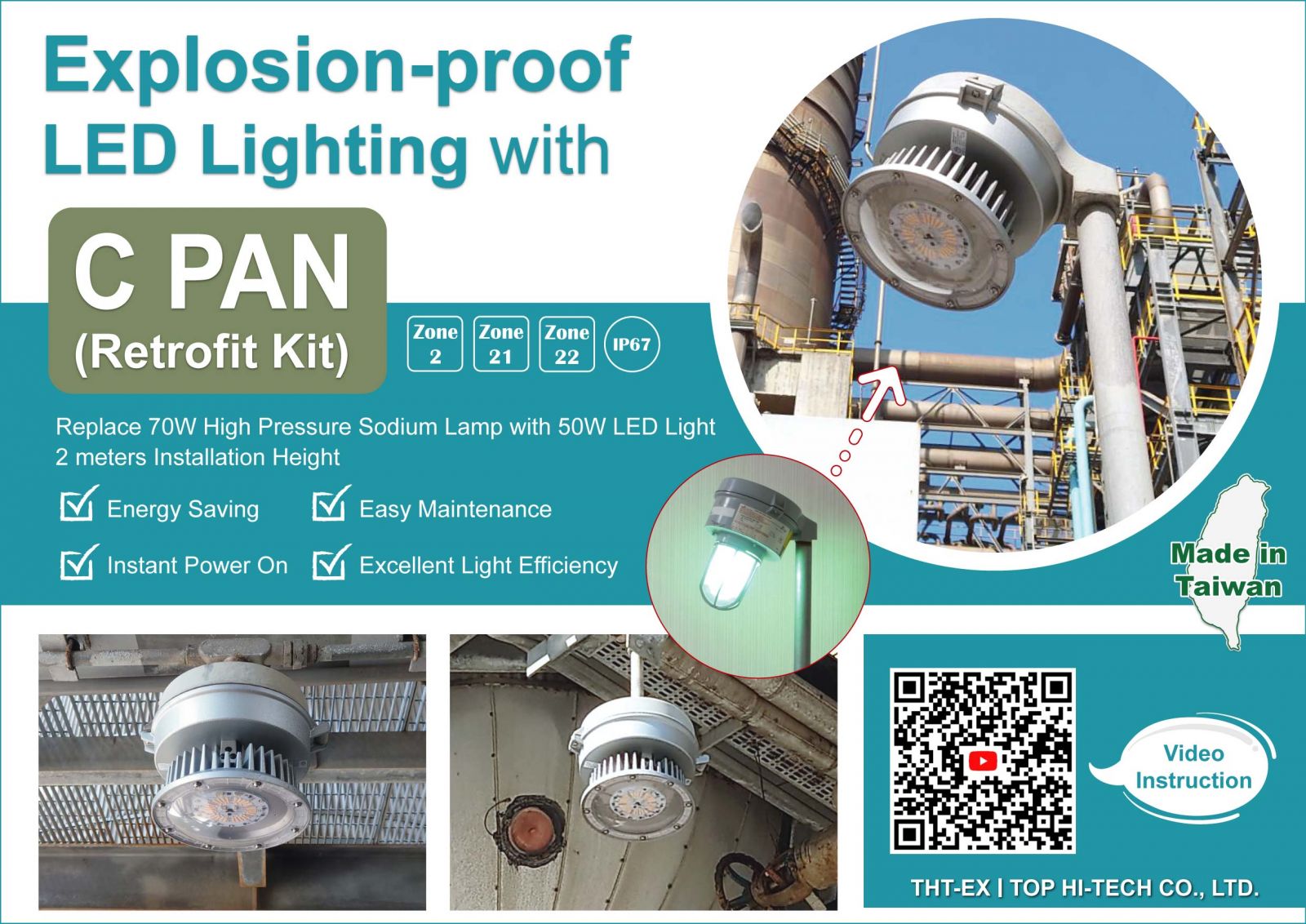 THT-EX社は、台湾の石油化学工場に従来のHPS 防爆照明器具をLED防爆照明器具に置き換えることをサポート致します。