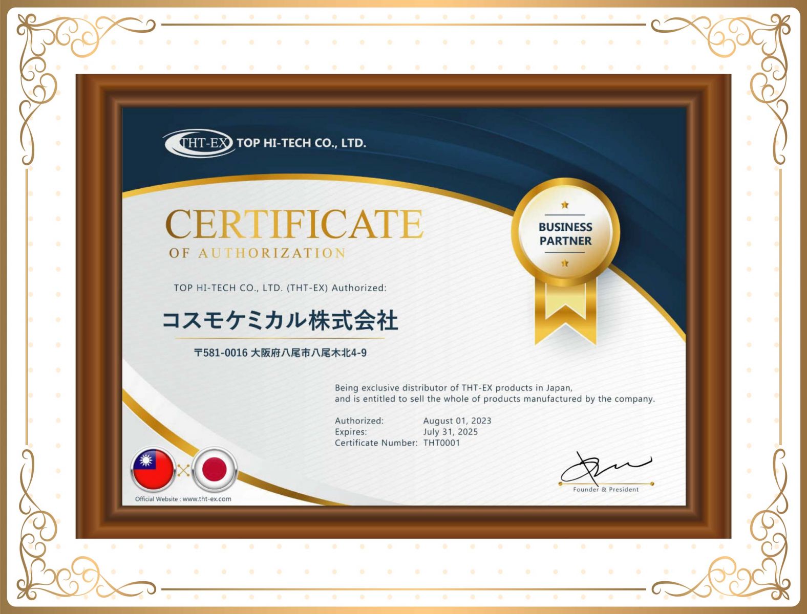 THT-EXは日本で主要な代理店を成功裏に設立し、政府の防爆認証を取得しました。