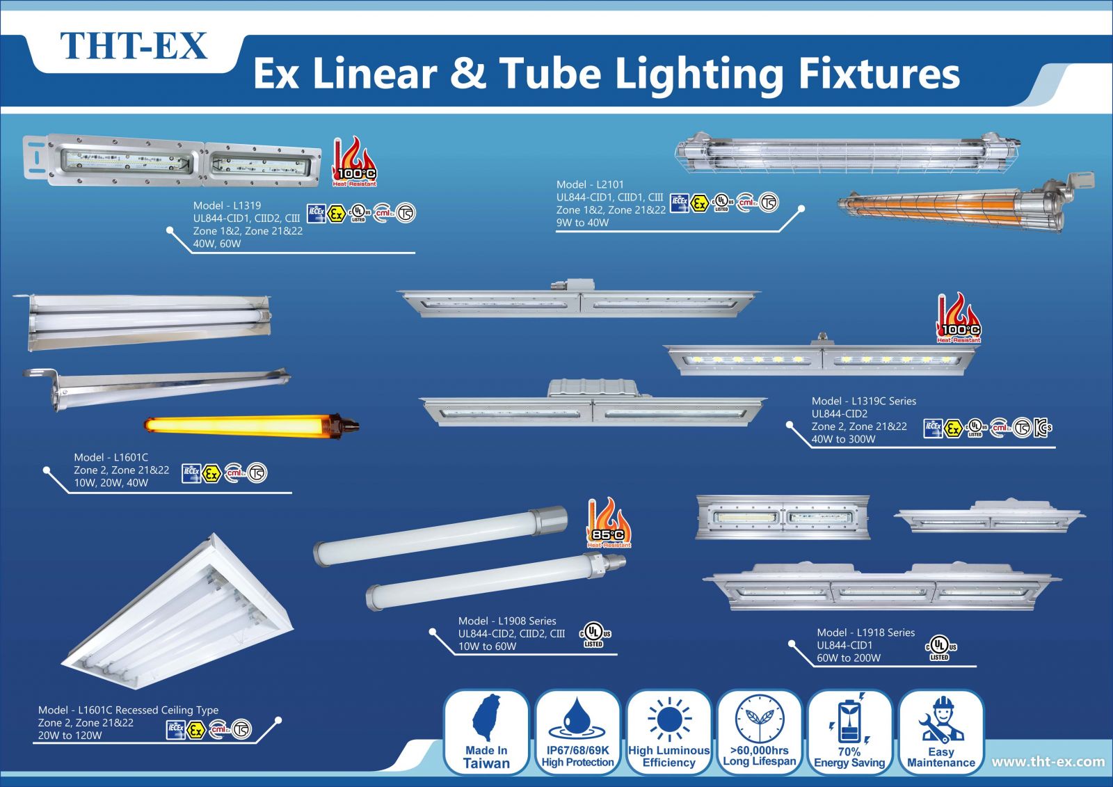 さらに、粉塵、危険なガス、液体が存在する作業環境では、防爆のリニアライトまたは直管型照明器具を選択することで、