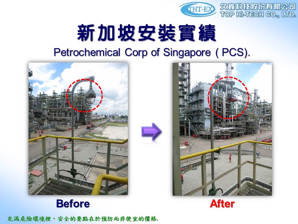 THT-EX防爆LEDライトは、シンガポールでPCSという石油化学(株)に導入しました。